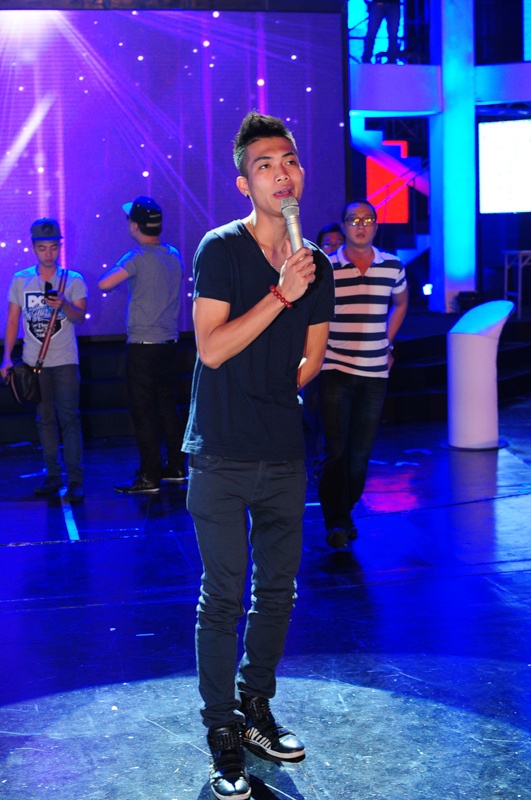 Cường Seven ngồi dưới sân khấu chăm chú theo dõi bạn bè tập luyện. Sau sản phẩm âm nhạc đầu tay, dancer nổi tiếng chuyển vào Nam hoạt động. |