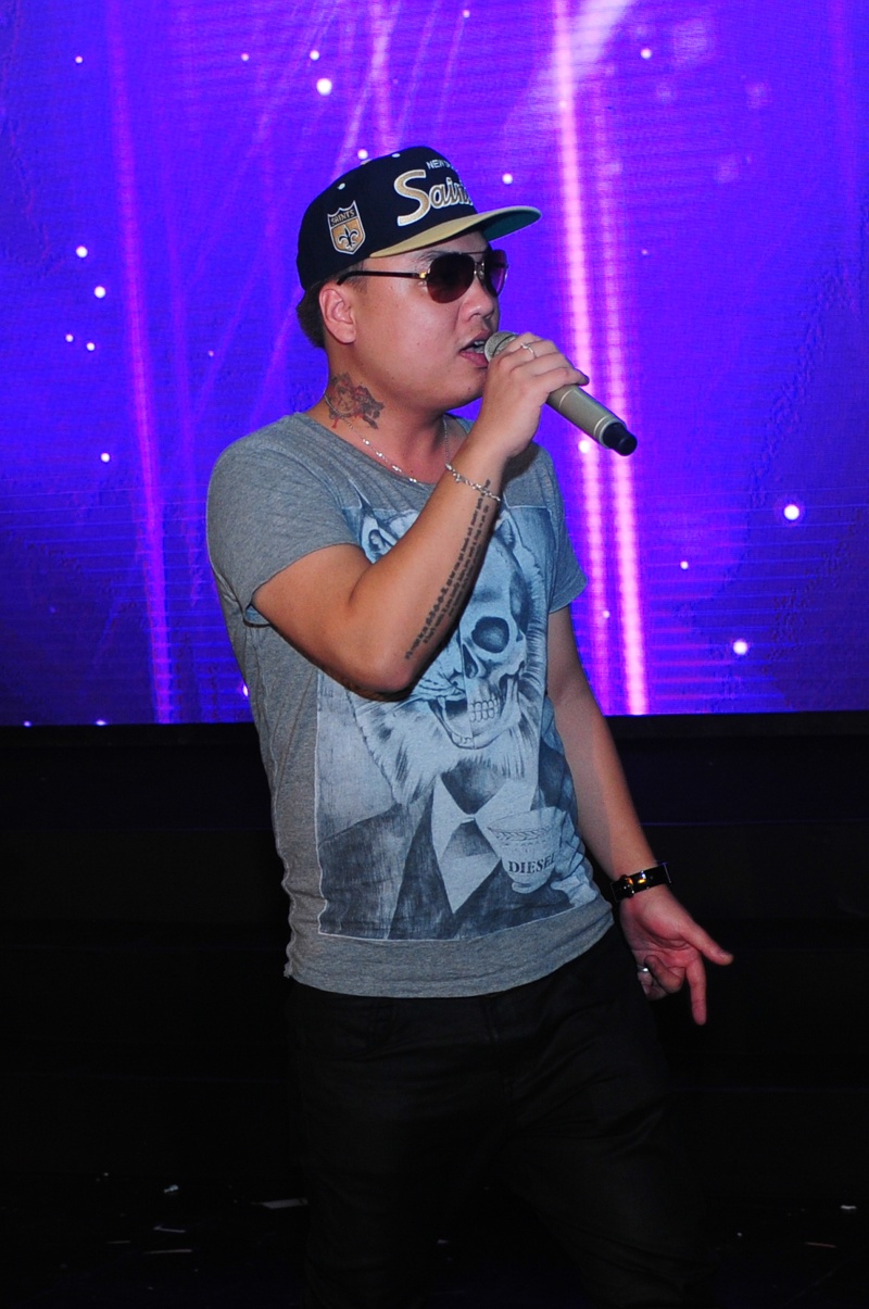 Chàng rapper đình đám của Hà Thành ăn mặc đơn giản với phong cách bụi của rap. |