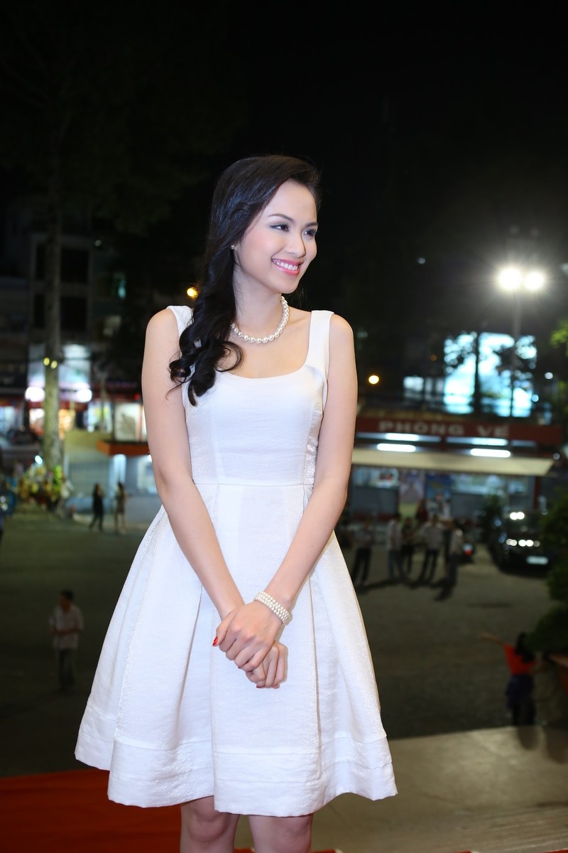 Diễm Hương diện trang phục duyên dáng trong buổi ra mắt phim.