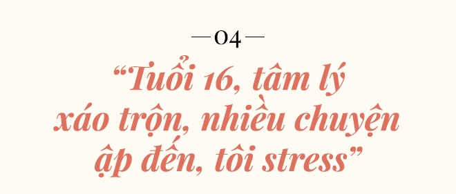 - Năm 16 tuổi, đó là độ tuổi dậy thì, tâm lý có nhiều xáo trộn. Lúc đó cũng có nhiều chuyện ập đến nên tôi cũng buồn và stress. Nhưng may mắn mọi chuyện đã qua nhờ sự động viên của người thân, đặc biệt là fan. Bình thường tôi nói rất nhiều nên người hâm mộ thấy tôi khác lạ hay buồn chuyện gì là biết ngay. Họ là người động viên tôi trong giai đoạn khó khăn đó.