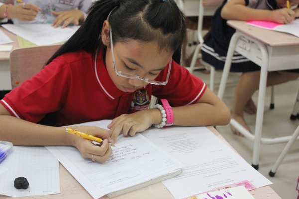 | Cô bé cẩn thận kiểm tra bài lại thêm một lần nữa trước khi nộp. |