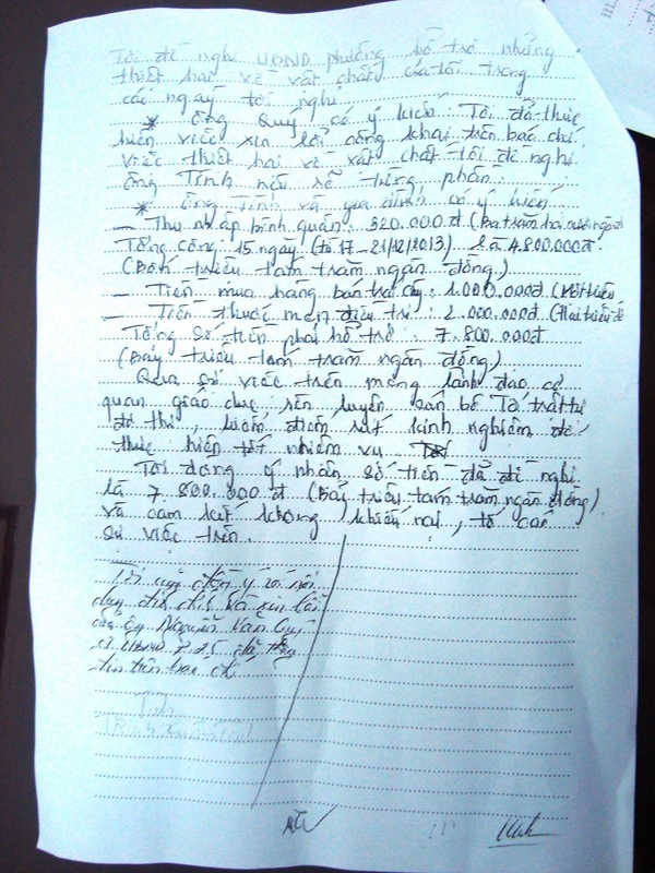 Cụ thể là trong biên bản tiếp xúc đối thoại công dân, ông Quý, đại diện UBND P.25 nói đã xin lỗi trên báo chí và đồng ý hỗ trợ cho anh Tình 15 ngày thu nhập (320.000 đồng/ngày), tiền thuốc 2 triệu đồng và tiền trái cây bị mất (tổng cộng 7,8 triệu đồng) và trả lại chiếc xe máy bị tịch thu không có biên bản vào chiều 6/12.