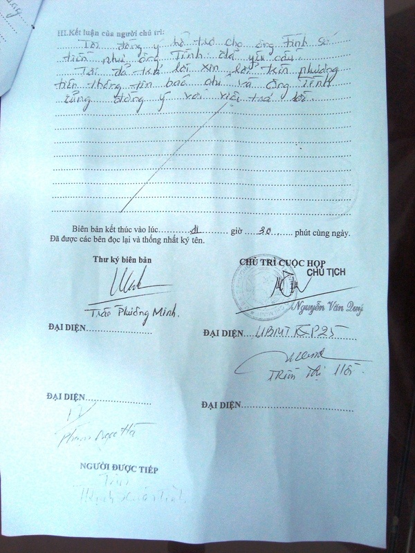 | Nội dung biên bản tiếp xúc và đối thoại công dân của UBND P.25, Q.Bình Thạnh |