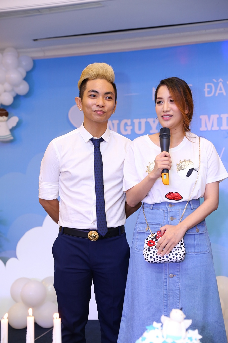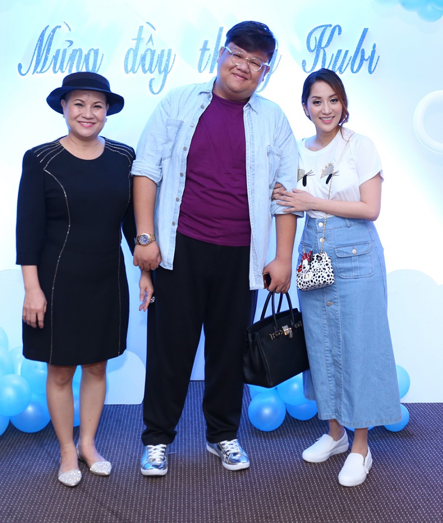 | Tối 16/8, Khánh Thi và Phan Hiển tổ chức tiệc đầy tháng con trai Kubi ở một nhà hàng sang trọng tại trung tâm Sài Gòn. Câu bé 1 tháng tuổi là kết quả tình yêu của cặp đôi hơn kém nhau 12 tuổi. |