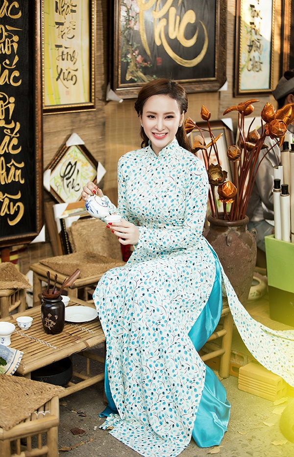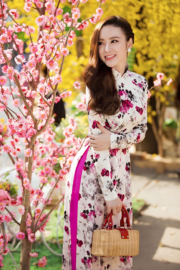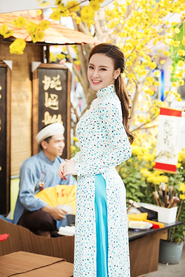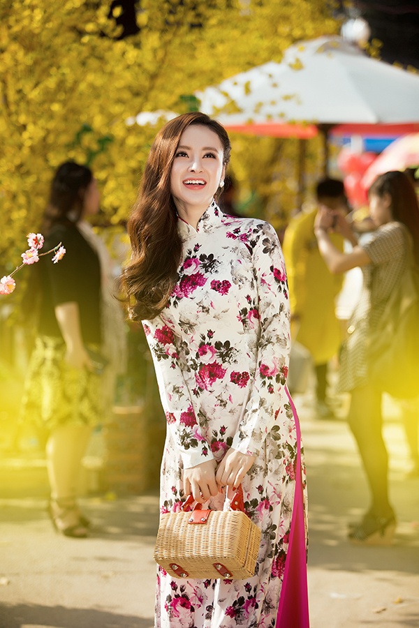 | Angela Phương Trinh rất thích diện những trang phục áo dài truyền thống có gam màu nhã nhặn để xuống phố những ngày Tết. |