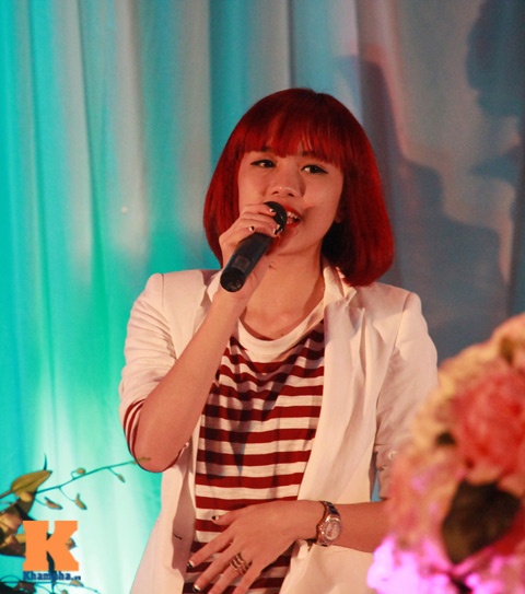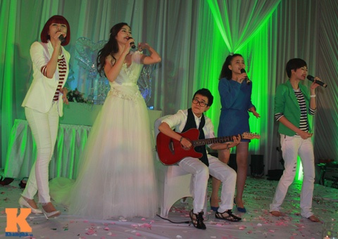 | Thiều Bảo Trâm biểu diễn chúc mừng đám cưới của chị gái Thiều Anh Đào. |