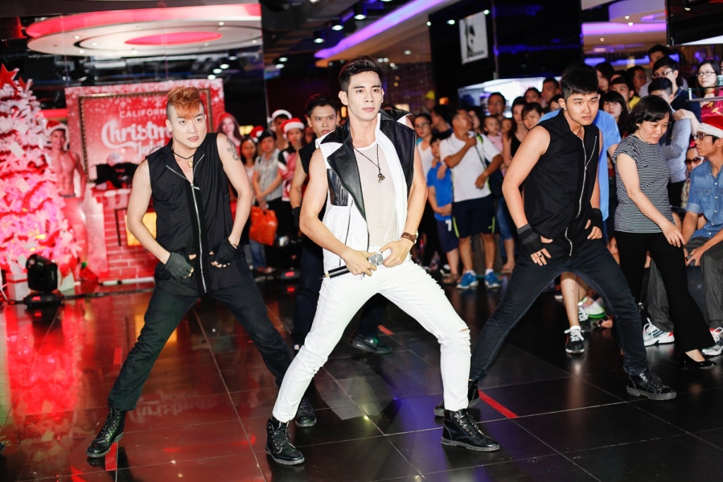 | Hồ Vĩnh Khoa đem đến cho khán giả màn biểu diễn sôi động với các bài hát chủ đề Giáng sinh như Jingle bell rock, Arenaline |