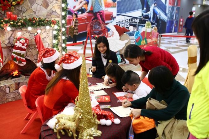 | Với thông điệp nhân văn Trao yêu thương nhiều hơn Giáng sinh này, các em nhỏ được trực tiếp viết những điều ước ấp ủ, hay những tâm sự gửi ông già Noel. Khu vực Hòm thư Santa tại các TTTM Vincom thu hút sự quan tâm của rất đông các em nhỏ và bố mẹ. |