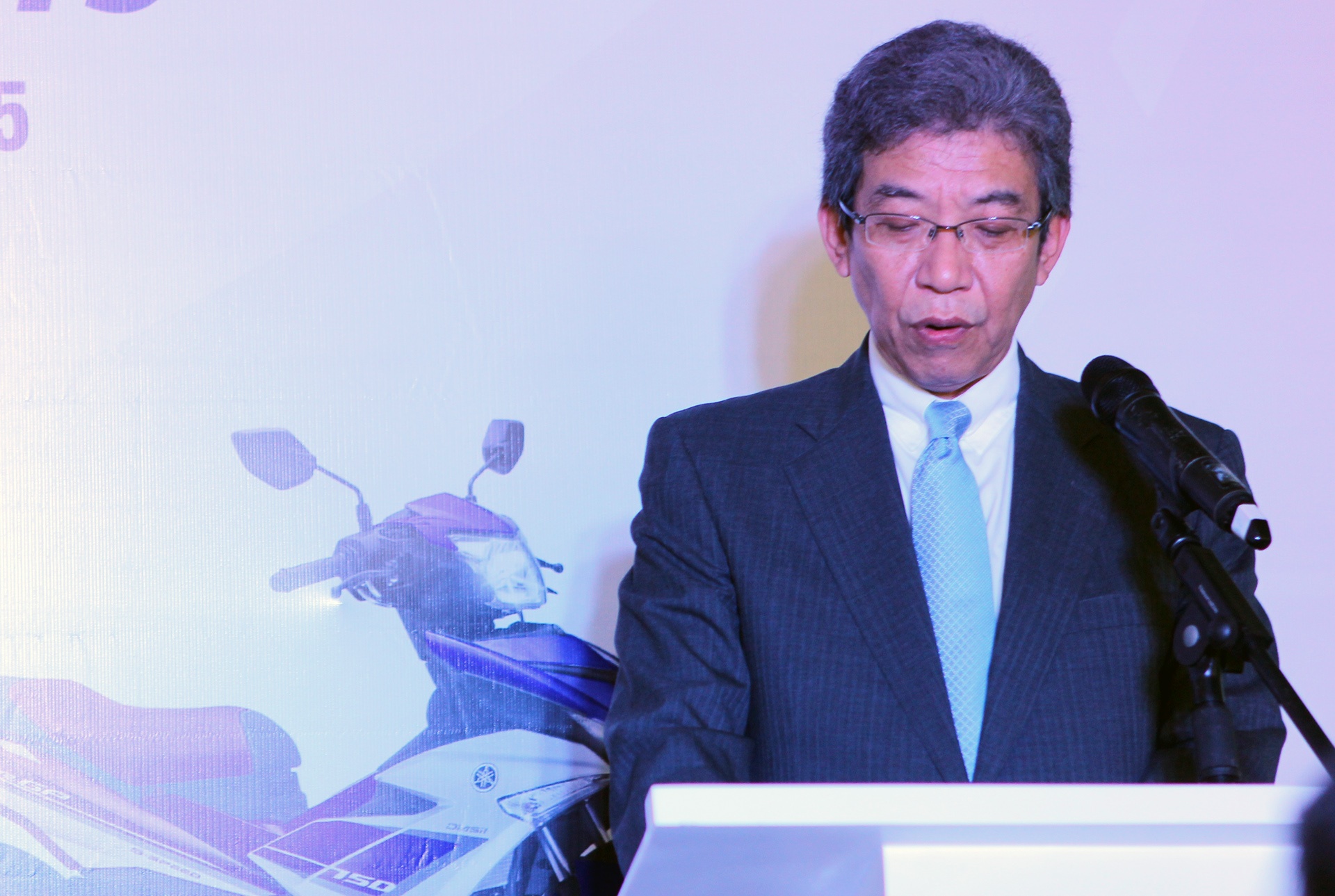 | Ông Ono Masaru, Tổng giám đốc công ty Yamaha Motor Việt Nam, phát biểu khai mạc chương trình Yamaha - Blue Core Touring 2015. Ảnh: Hạ Phong |