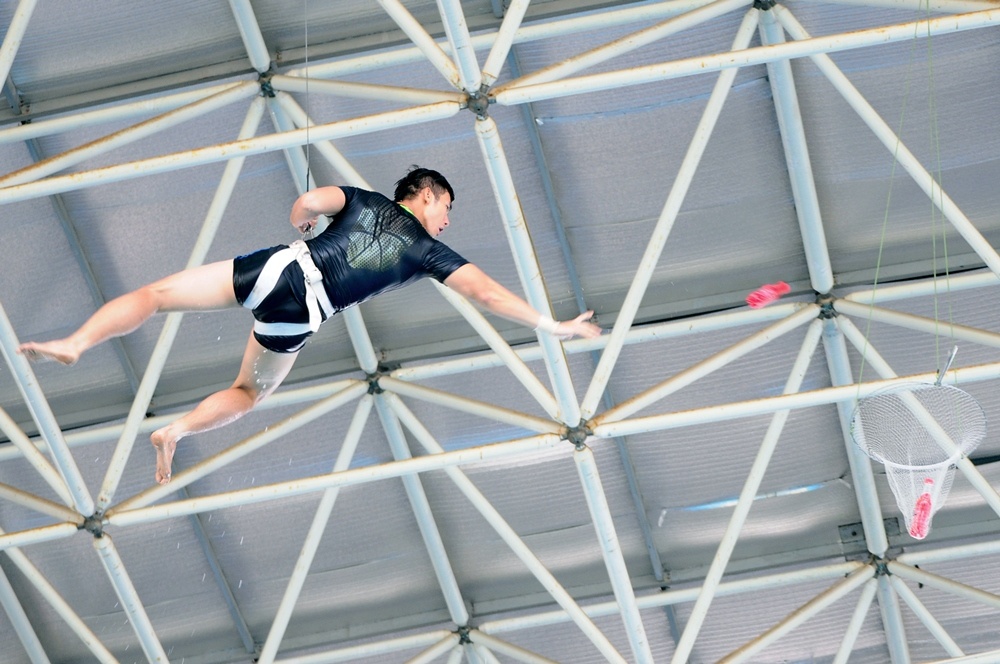 Chỉ trong một thời gian ngắn, anh đã hoàn thành xong yêu cầu của thử thách khônng hề dễ nuốt là tìm chai nước được khóa kĩ trong hộp đặt dưới bể bơi rồi thẩy vào rổ được treo giữa không trung.