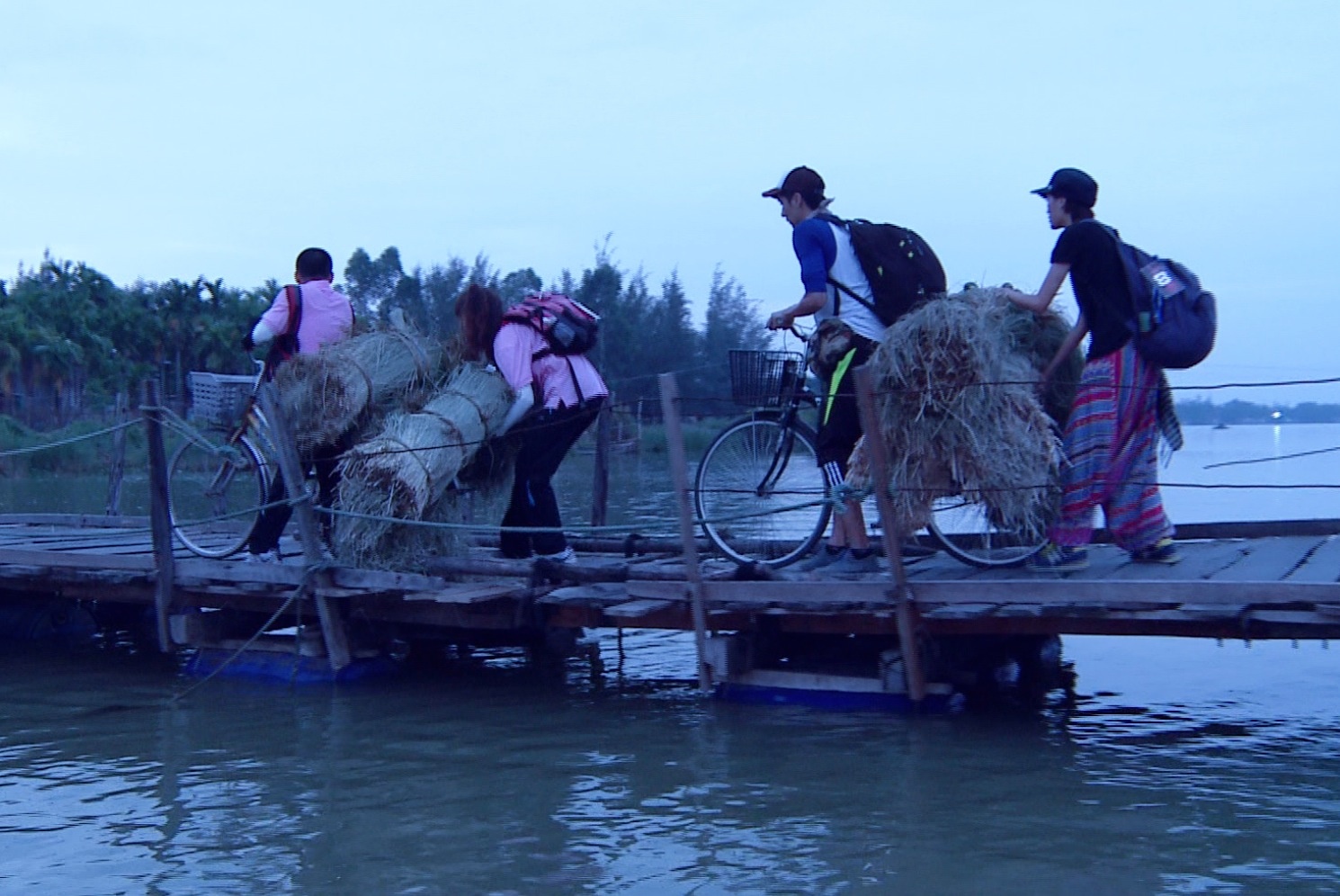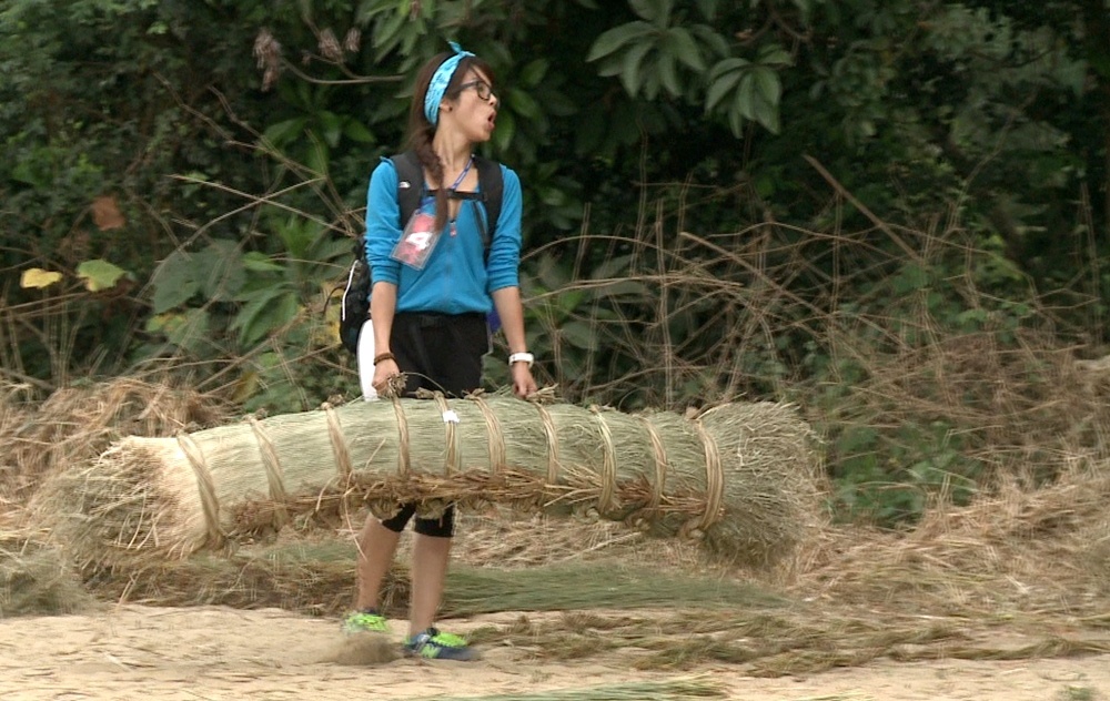 Cặp đôi này cũng rất ăn ý trong thử thách vận chuyển 3 bó cói nặng trịch.