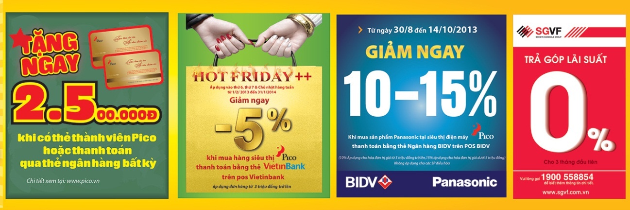 Ngoài ra khách hàng có thể tham gia thêm nhiều chương trình ưu đãi đặc biệt chỉ có tại Pico nhằm hỗ trợ khách hàng mua sắm một cách dễ dàng, tiện lợi như: