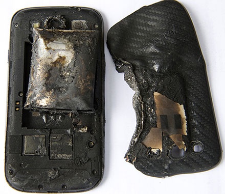 | Một smartphone bị cháy và biến dạng do pin - Ảnh: T.Trực - pcguia.pt |
