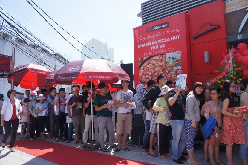 | Khách hàng tại Vũng Tàu háo hức chào đón Pizza Hut ngay trong ngày khai trương. |