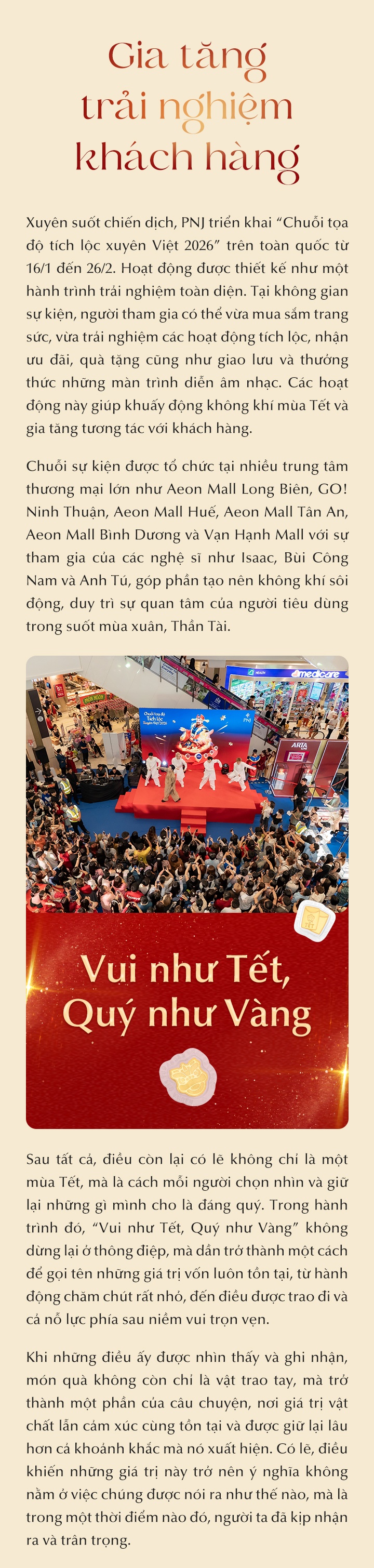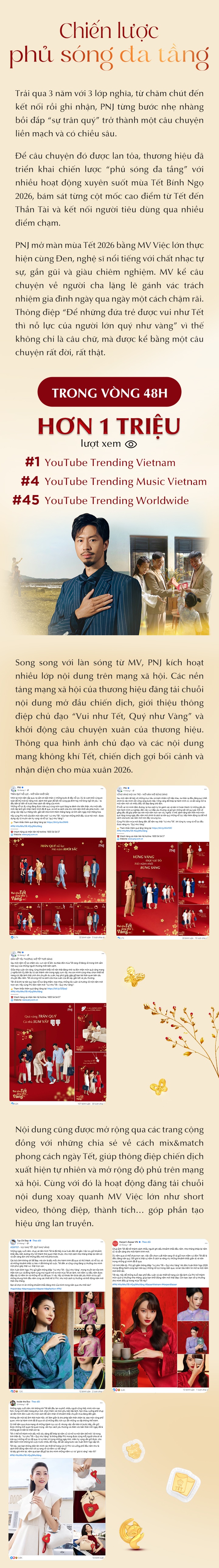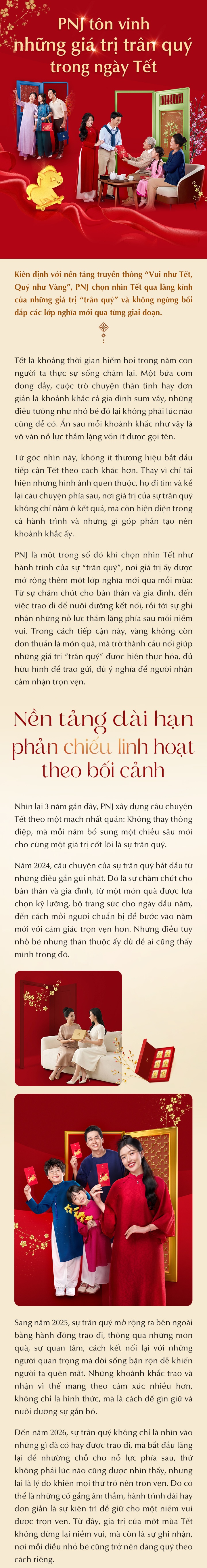 Kiên định với nền tảng truyền thông “Vui như Tết - Quý như Vàng”, PNJ chọn nhìn Tết qua lăng kính của giá trị “trân quý” và không ngừng bồi đắp lớp nghĩa mới qua từng giai đoạn.