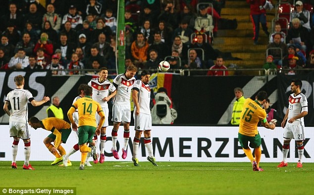 | Cú đá phạt của Jedinak đưa bóng vào góc cao khung thành khiến Zieler không thể truy cản. |