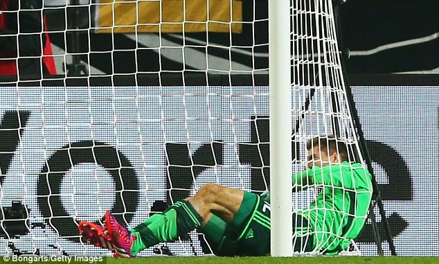| Cầu thủ đang thi đấu cho Inter Milan chia vui cùng đồng đội sau khi giúp nhà đương kim vô địch thế giới tránh khỏi thất bại ngay trên sân nhà Fritz-Walter (Kaiserslautern). |