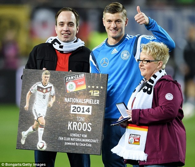 | Trước khi trận đấu bắt đầu, tiền vệ Toni Kroos nhận danh hiệu "Cầu thủ xuất sắc nhất nước Đức 2014". |