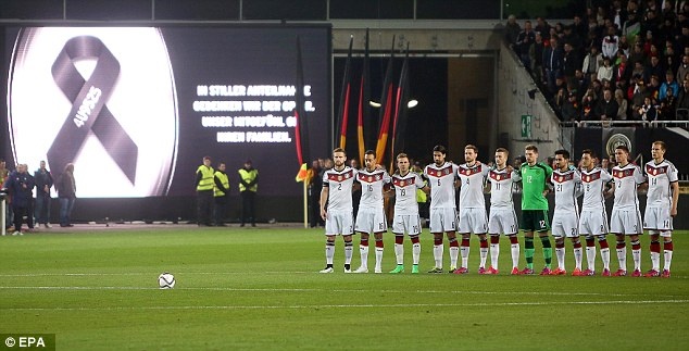 | Hai đội cũng dành ít phút để tưởng niệm vụ tai nạn máy bay 4U9525. Trong số 150 nạn nhân, có 67 người dân Đức. |