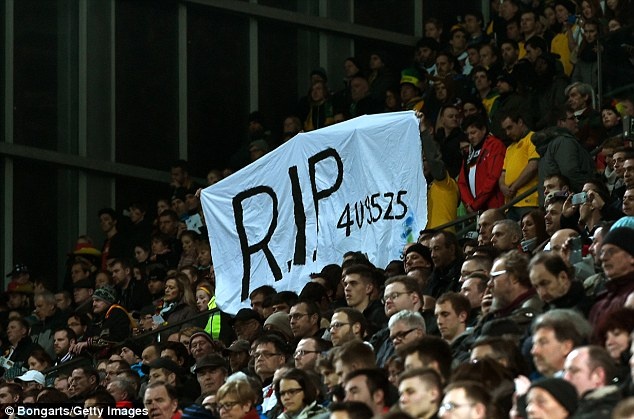 | Trên khán đài, người hâm mộ cũng tưởng nhớ tới chiếc máy bay của hãng hàng không Đức gặp nạn gần dãy núi Apls. |