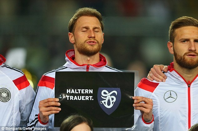 | Hậu vệ Benedikt Howedes của tuyển Đức cầu nguyện cho những nạn nhân xấu số. |