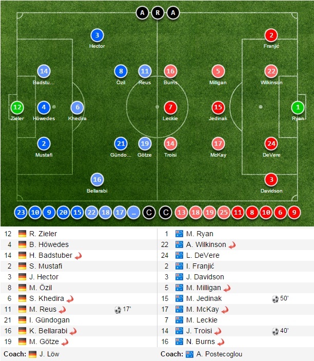 | Danh sách thi đấu trận giao hữu giữa Đức và Australia. |