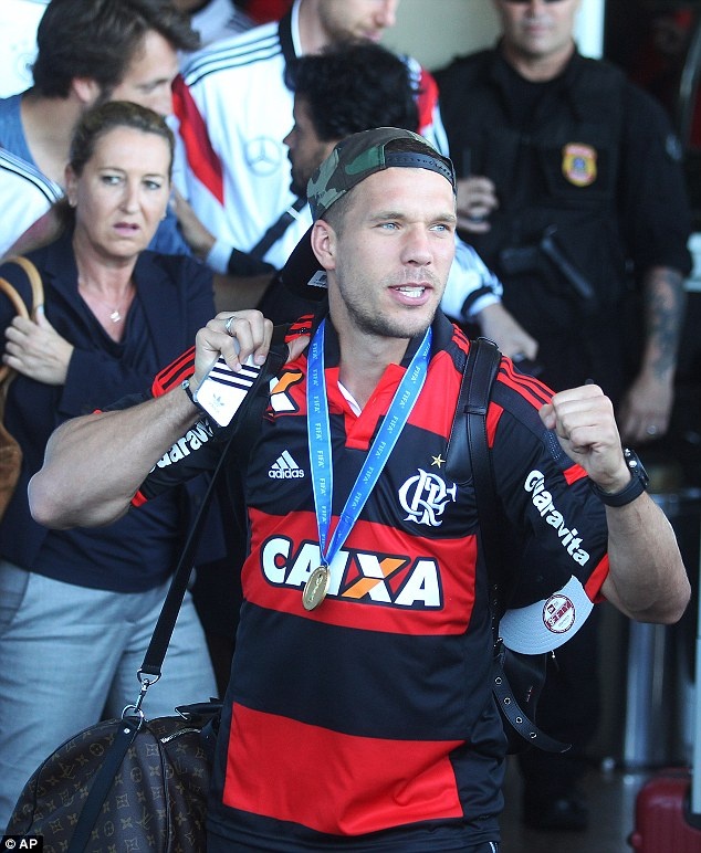 "Chào mừng tất cả hành khách. Tôi là cơ trưởng Podolski. Chúng tôi rất mong được gặp lại tất cả người hâm mộ ở Berlin" - Podolski dí dỏm viết. Trước đó, Lukas và HLV Joachim Loew đã có mặt trên ban công khách sạn Rio de Janeiro để giao lưu và ký tặng người hâm mộ. Lukas Podolski tỏ ra thân thiện khi mặc một chiếc áo đấu của câu lạc bộ địa phương Brazil.