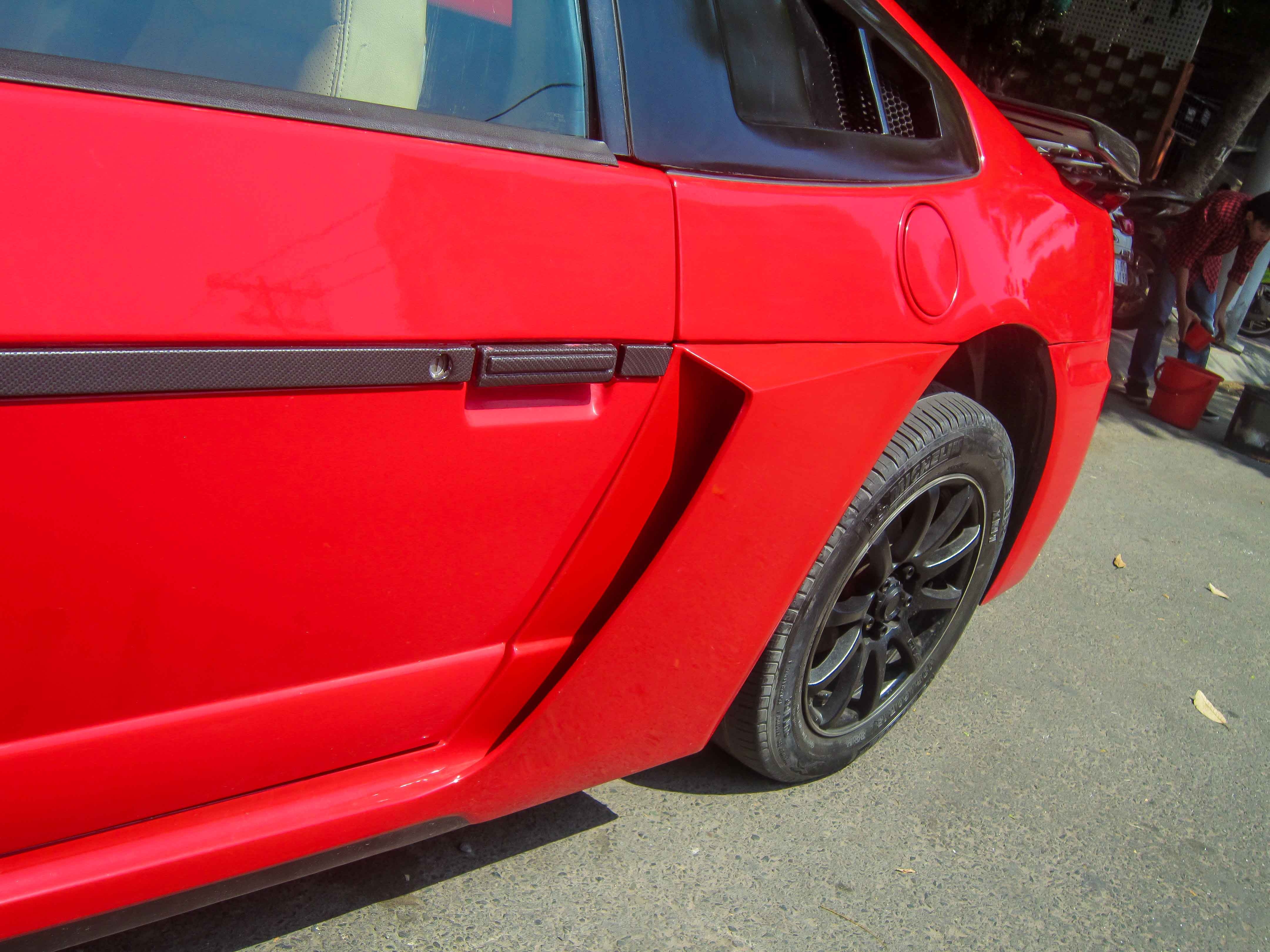 | Bên hông xe được dán decal giả carbon cùng khe hút gió lớn. |