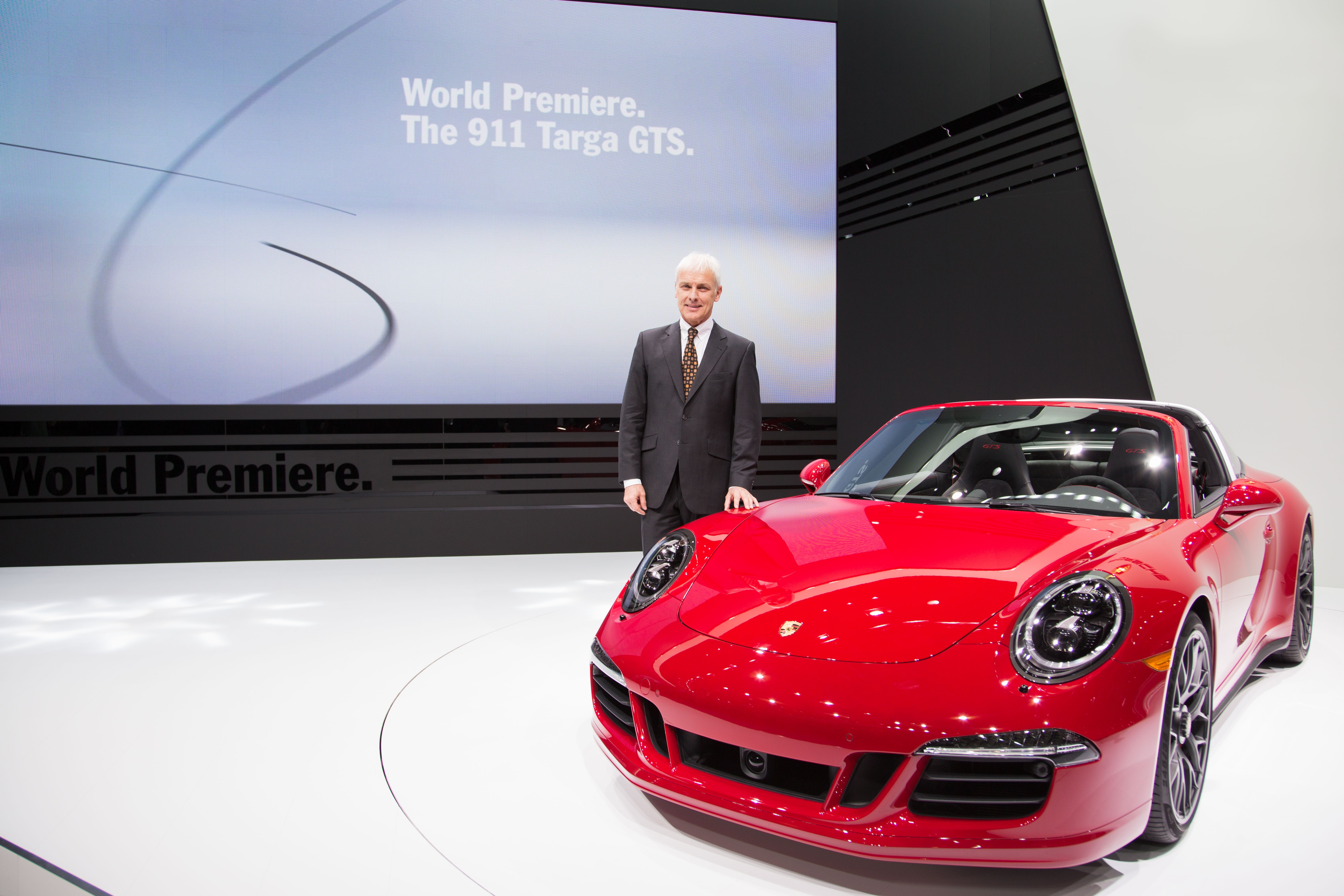 | Porsche vừa ra mắt thể thao 911 Targa 4 GTS và siêu SUV Cayenne Turbo Stại triển lãm ôtô Quốc tế Bắc Mỹ 2015 ở Detroit. Đây là lần đầu tiên một mẫu xe đời mới của dòng 911 kết hợp thành công giữa phiên bản GTS hiện đại và Targa 4 cổ điển. |