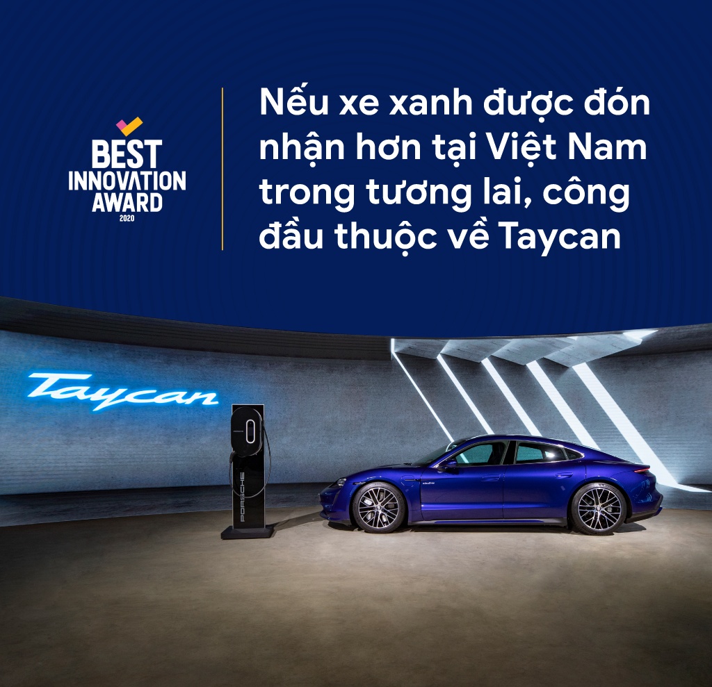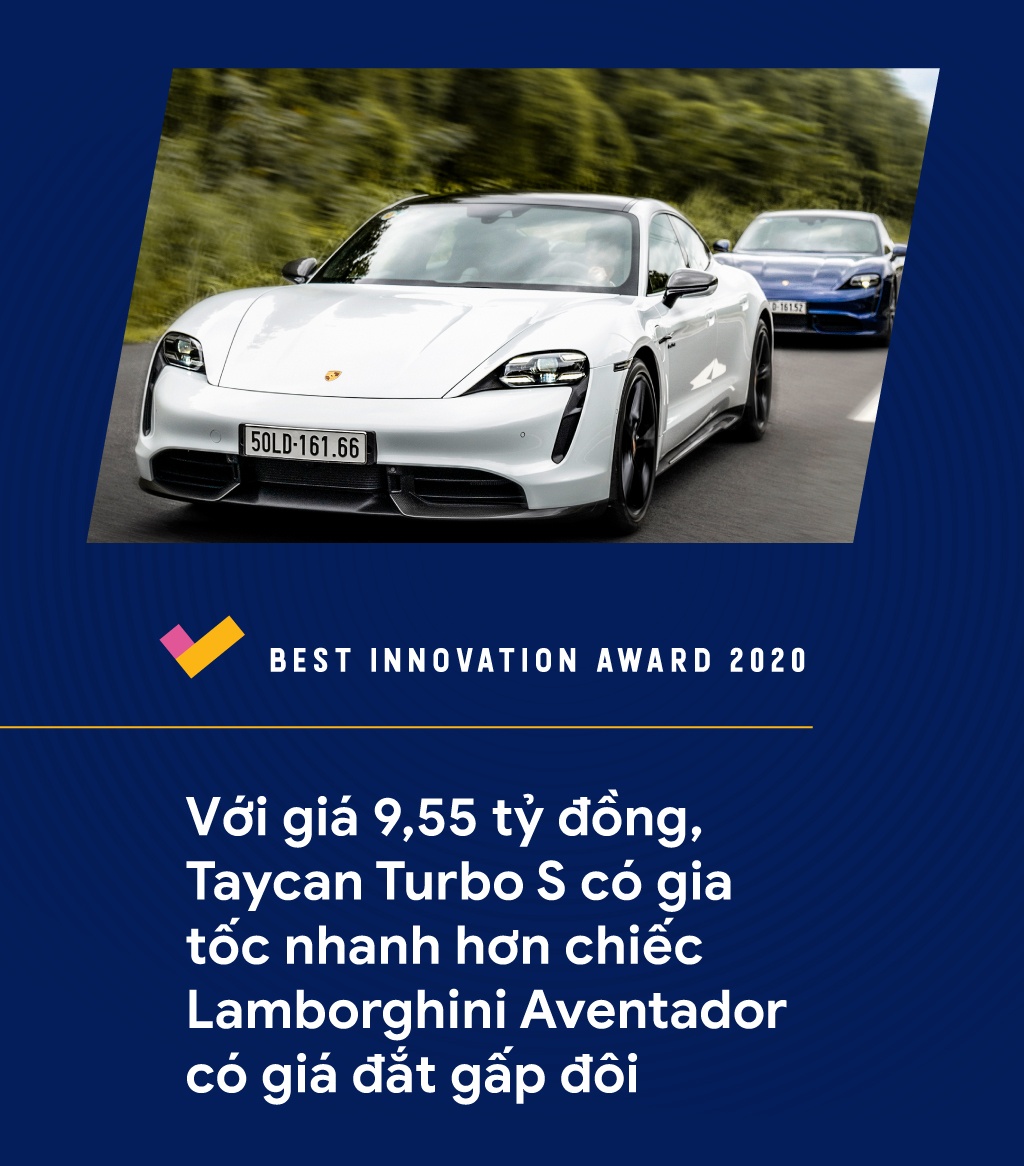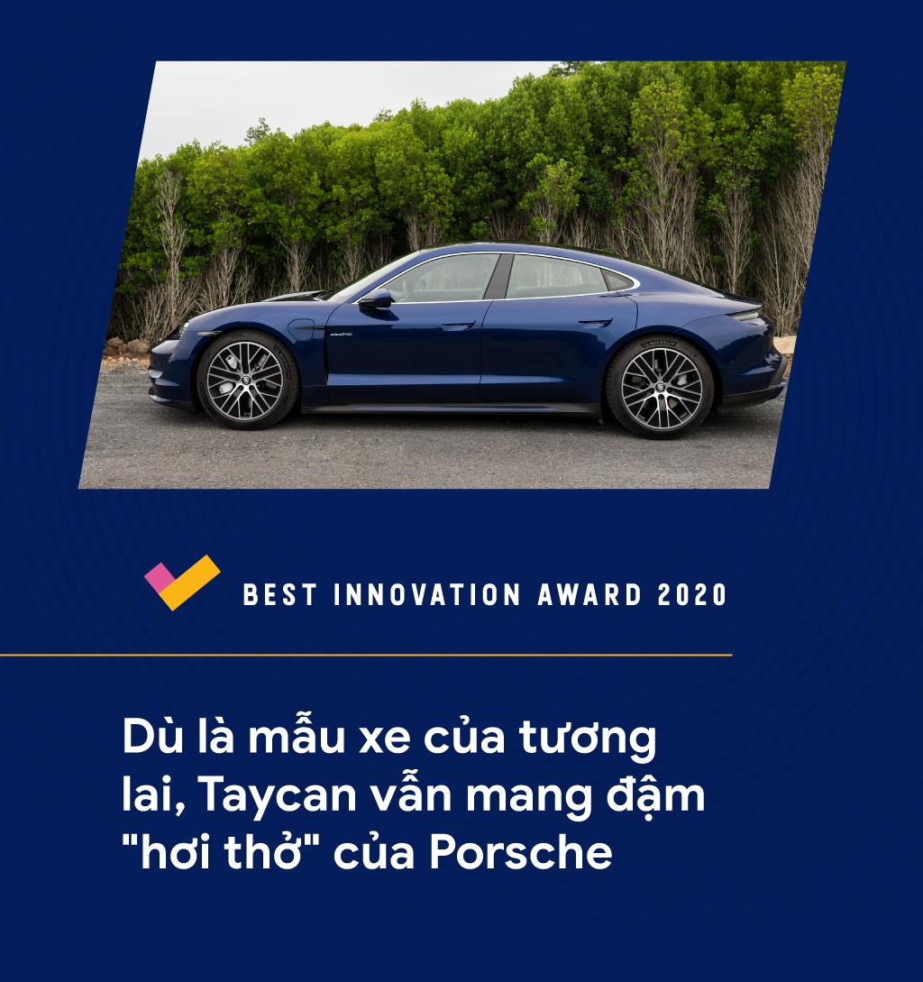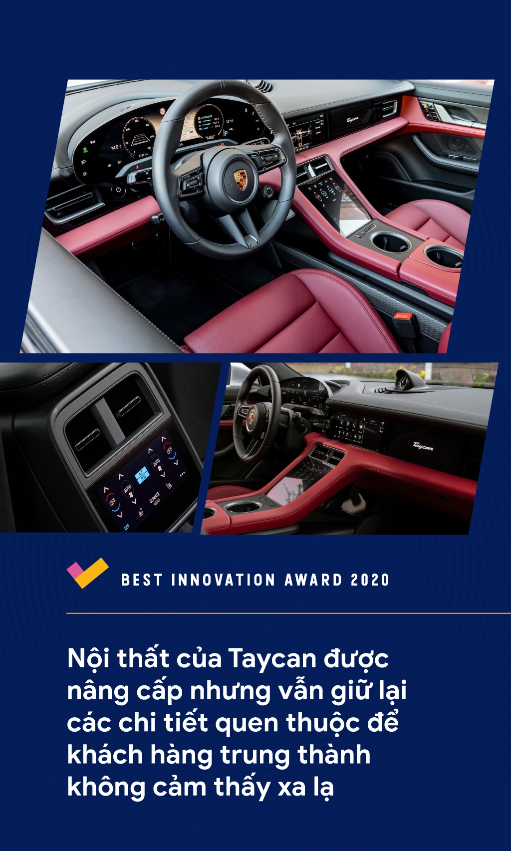 Porsche Taycan là mẫu smart car được bình chọn nhiều nhất ở giải thường Best Innovation Award 2020. Hai mẫu xe xếp sau là Volvo XC90 T8 Recharge và Audi Q7.
