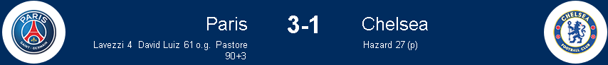 90+3': Đúng vào phút bù giờ cuối cùng, Pastore đã nâng tỷ số lên 3-1 cho PSG. Tưởng rằng cầm bóng ở góc hẹp, Javier Pastore sẽ không có lựa chọn nào khác ngoài việc câu giờ, nhưng anh bất ngờ độc diễn qua 3 cầu thủ áo trắng và sút sệt hóc hiểm đánh bại Petr Cech. Một bàn thắng quá đẹp.