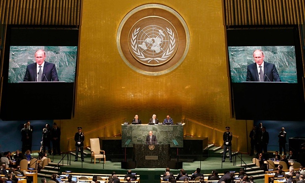 | Putin bày tỏ niềm tin vào vai trò của Liên Hợp Quốc để giúp tránh một cuộc đối đầu toàn cầu. Ảnh: Guardian |