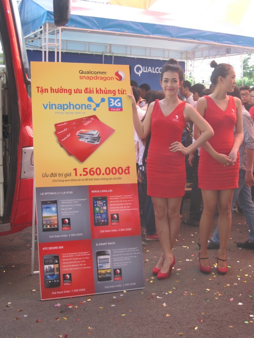 Ngoài ra, khách tham quan còn có cơ hội nhận được những chương trình khuyến mãi, ưu đãi hấp dẫn khi mua thiết bị được trang bị chipset Snapdragon từ các đối tác hàng đầu của Qualcomm như Thế Giới Di Động, Viễn Thông A, Vinaphone và Viettel. Đặc biệt là cơ hội bốc thăm nhận phần thưởng lớn nhất chương trình là chuyến đi Hong Kong và được Vinaphone cung cấp miễn phí gói dữ liệu 3G trị giá 1,56 triệu đồng.