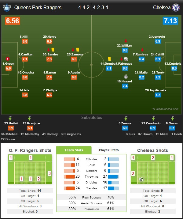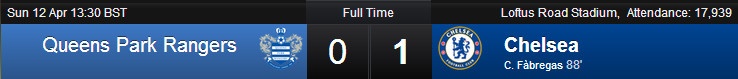 Chiến thắng tối thiểu 1-0 giúp Chelsea nới rộng khoảng cách với Arsenal lên thành 7 điểm. Trong khi thất bại ngay tại Loftus Road khiến QPR vẫn giậm chân trong nhóm “cầm đèn đỏ”.