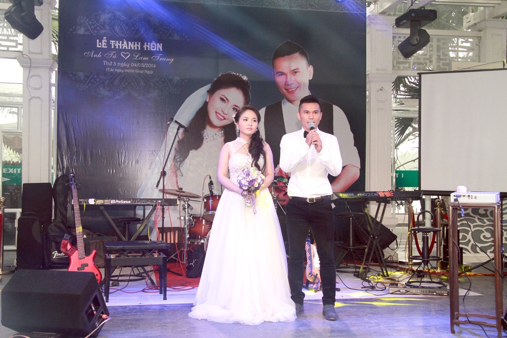Sau lễ ăn hỏi được tổ chức hôm 24/1, cựu thành viên nhóm Quả Dưa Hấu và ca sĩ Lam Trang chính thức nên duyên vợ chồng vào ngày 4/3. Hôn lễ của cặp đôi được tổ chức khá đơn giản tại một nhà hàng sang trọng nằm ngay sát hồ Hoàn Kiếm - Hà Nội.