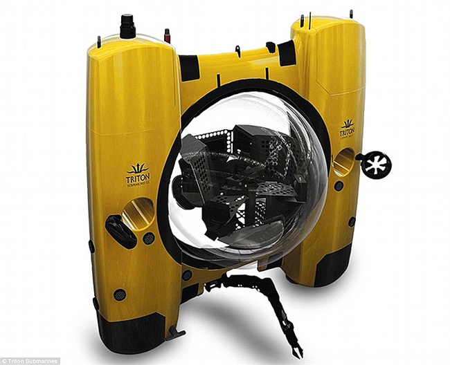 | Tàu ngầm Triton Submarines thế hệ mới gồm 3 ghế ngồi, có thể đạt tới độ sâu gần 11km, có mức giá 32 triệu USD. |