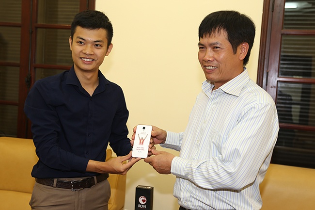 Hình ảnh trao tay quà tặng đặc biệt của ROVI cho Đoàn Thể thao Việt Nam (TTVN) đã hé lộ phần nắp lưng của chiếc HERO 2, smartphone mới nhất của thương hiệu Việt do chính người Việt thiết kế hình ảnh biểu tượng “Khát vọng chiến thắng”. Theo thông tin từ ông Trần Đức Phấn - Trưởng đoàn Thể thao Việt Nam tại SEA Games 28, đoàn sẽ dành tặng phần quà này cho một VĐV xuất sắc nhất theo tiêu chí bình chọn của Đoàn TTVN.