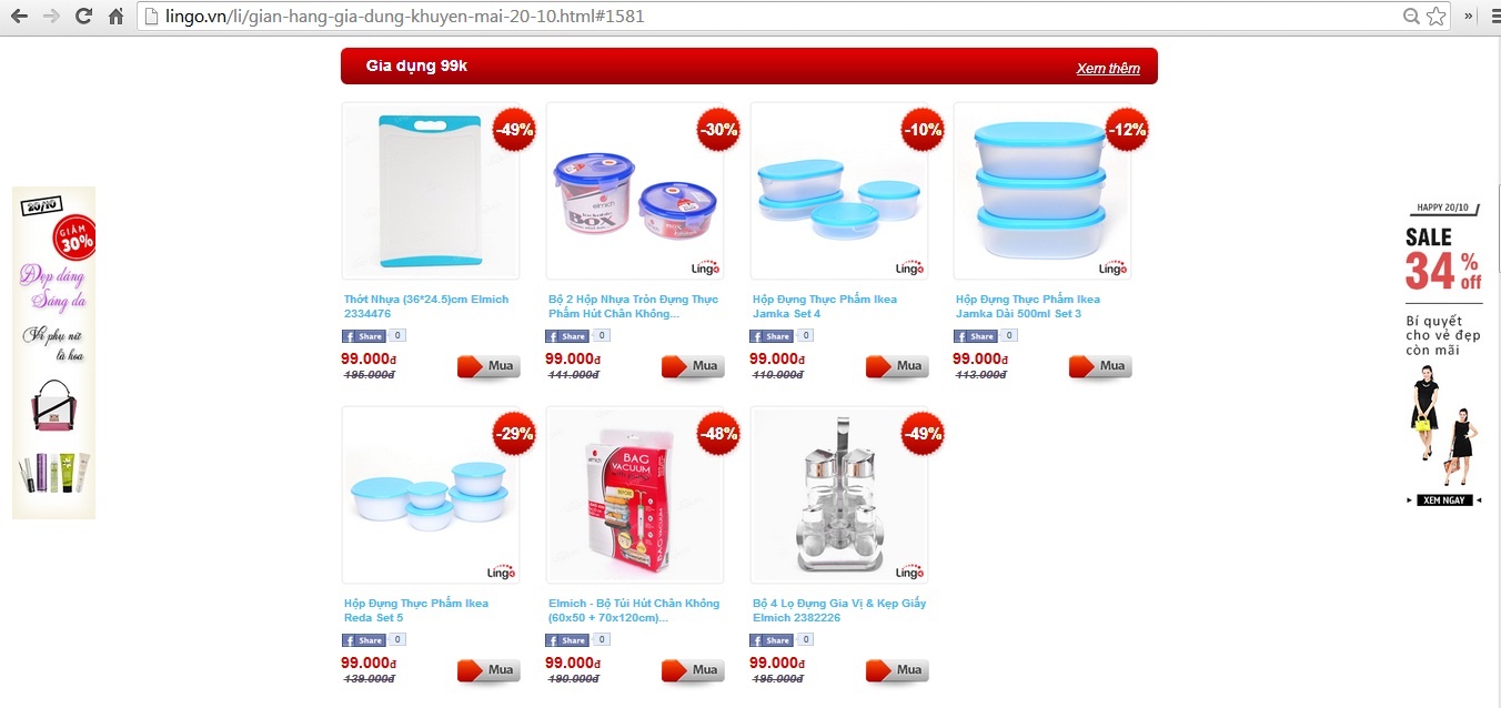 | Một số sản phẩm có giá 99.000 đồng trên website Lingo.vn. |