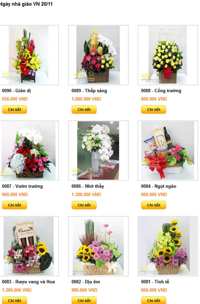 Riêng với điện hoa, qua khảo sát tại nhiều cửa hàng cho thấy, các mẫu hoa bán theo đề tài được nhiều người đặt mua nhất. Giá của mỗi giỏ hoa "thắp sáng", "cổng trường", "nhớ thầy" dao động từ 800.000 đồng đến 1,3 triệu đồng. Giá với các lãng hoa lớn đắt hơn, từ 1,6 triệu đồng đến 3.2 triệu đồng, nhưng rất kén khách mua.