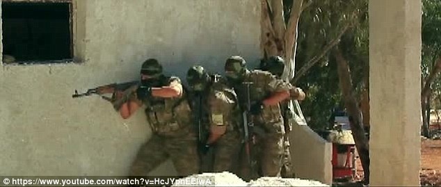 Video phát hành với lời thuyết minh bằng tiếng Ả rập. Các tân binh tham gia cuộc huấn luyện quy mô bao gồm leo dây xuống vách đá dựng đứng, đeo mặt nạ đột nhập vào các tòa nhà hoặc chiến đấu với xe bọc thép. |