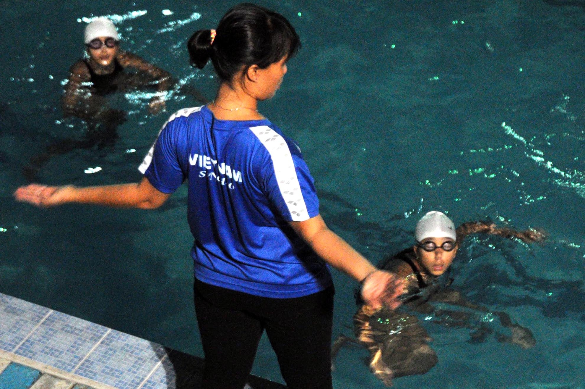 Môn bơi nghệ thuật rất hấp dẫn, nhưng lại khá kén chọn vận động viên. “Mỗi năm chúng tôi tuyển chọn nhiều em, nhưng vì nhiều lý do như quá cực khổ, mất nhiều thời gian... nên mỗi khóa chỉ còn lại vài người bám trụ được với môn này”, cô Thủy chia sẻ. |