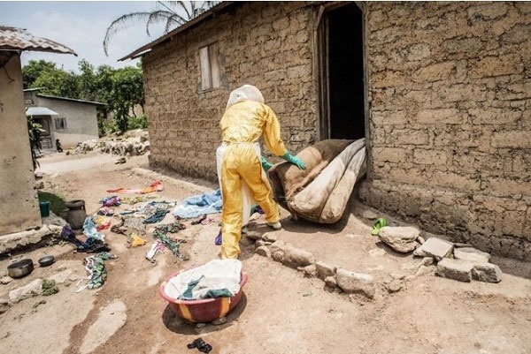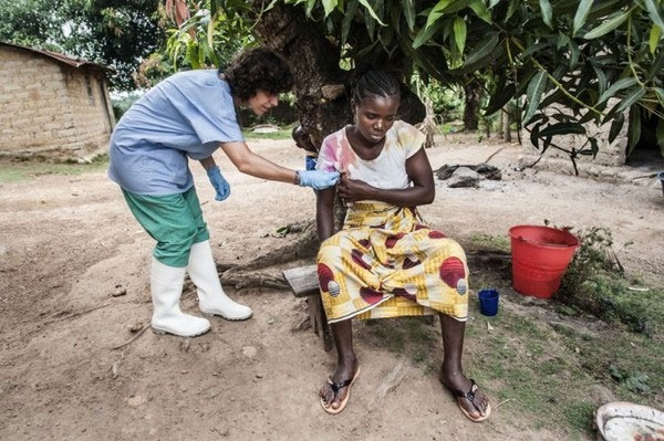 Ebola cũng có thể lây qua vết xước nhỏ trên da, niêm mạc người lành tiếp xúc với người nhiễm bệnh hoặc thậm chí qua vật trung gian như chăn, đệm, ga giường, quần áo, kim tiêm. Ảnh: Sylvain Cherkaoui |