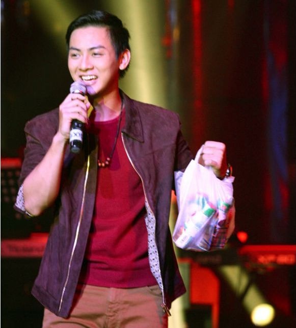 | Hoài Lâm: Trong một đêm diễn tại phòng trà vào cuối tháng 7, quán quân Gương mặt thân quen bất ngờ nhận được món quà bình dân từ fan là túi nylon đựng đầy sữa, bánh... Hoài Lâm rất cảm động trước tình cảm mà mọi người dành cho mình. Nổi lên từ chương trình truyền hình thực tế, con trai nuôi Hoài Linh được xem là một trong những nghệ sĩ trẻ có lượng fan hâm mộ lớn trong showbiz Việt. Ảnh: Yannews. |
