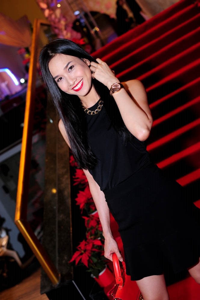 Tối 14/2, người mẫu Tuyết Ngọc tổ chức buổi khai trương ra mắt cơ sở kinh doanh riêng tại TP.HCM. Đến góp mặt chúc mừng người đẹp lên chức bà chủ có đông đảo bạn bè thân thiết của cô như Quách An An, Võ Hoàng Yến, Dương Mỹ Linh... Trong đó, nữ diễn viên Chuông reo là bắn diện trang phục đơn giản nhưng rất nổi bật với chiếc áo gam màu trắng chất liệu ren mỏng manh để lộ nội y khiến cô trở thành tâm điểm của buổi tiệc.