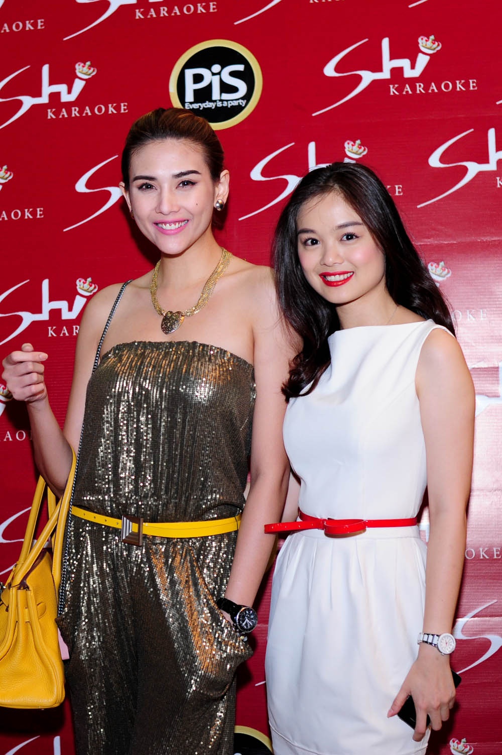 Nữ người mẫu diện một chiếc áo mỏng tang để lộ nội y khi đến chúc mừng bạn thân Tuyết Ngọc khai trương quán karaoke nhân dịp lễ Tình nhân.