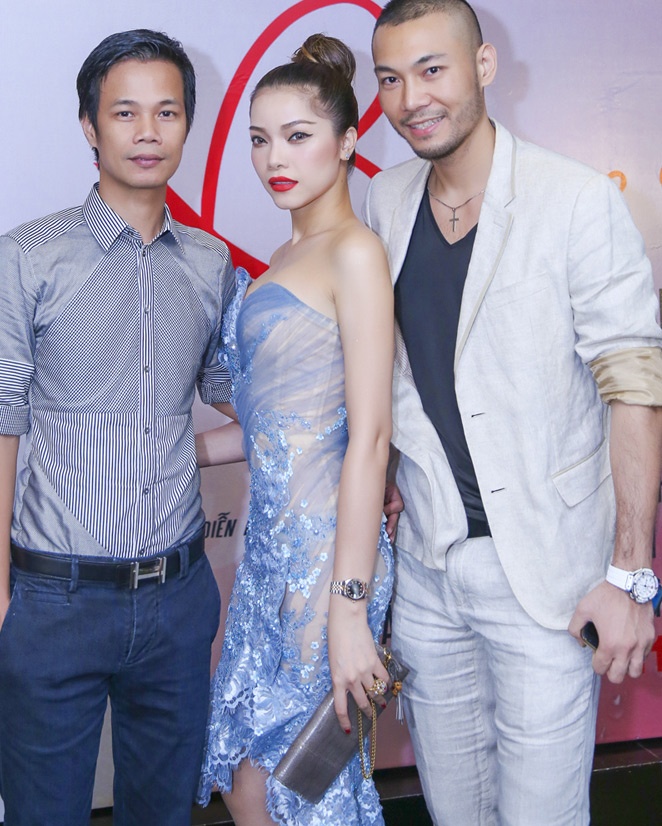 | Cặp đôi chụp hình cùng NTK Hoàng Hải. Họ là những người bạn thân ngoài đời. |
