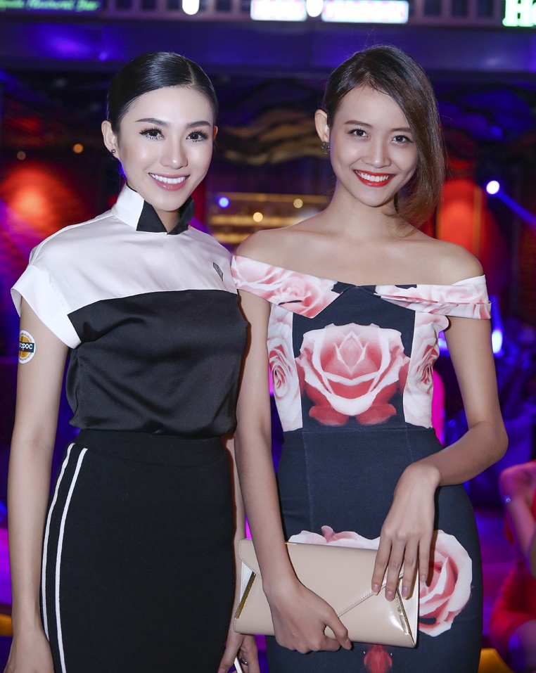 | Người mẫu Lê Hà - bạn gái cũ của tiền đạo Mạc Hồng Quân mặc kín đáo đi tiệc. Cô đang là thí sinh của cuộc thi Hoa hậu Việt Nam 2014. Trương Mỹ Nhân cũng góp mặt ở sân chơi nhan sắc này và được xếp vào nhóm ứng viên bởi chiều cao nổi trội. |