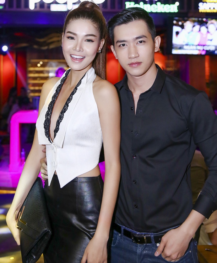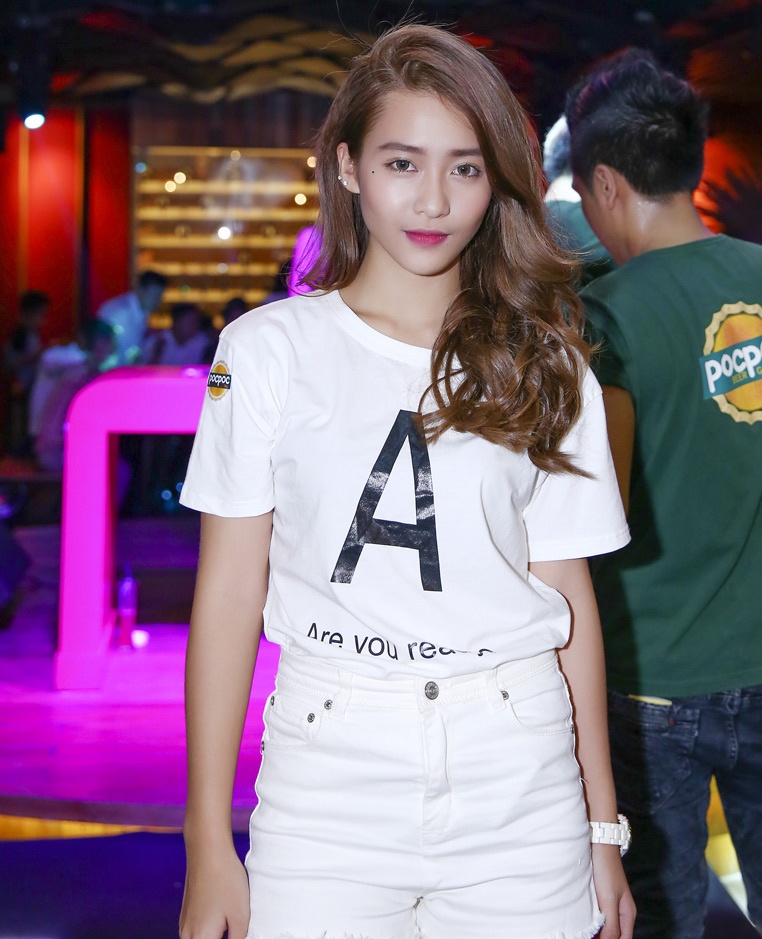 | Trong khi đàn chị An An mặc gợi cảm, Khả Ngân diện trang phục kín đáo nhưng trẻ trung, năng động đi tiệc. |