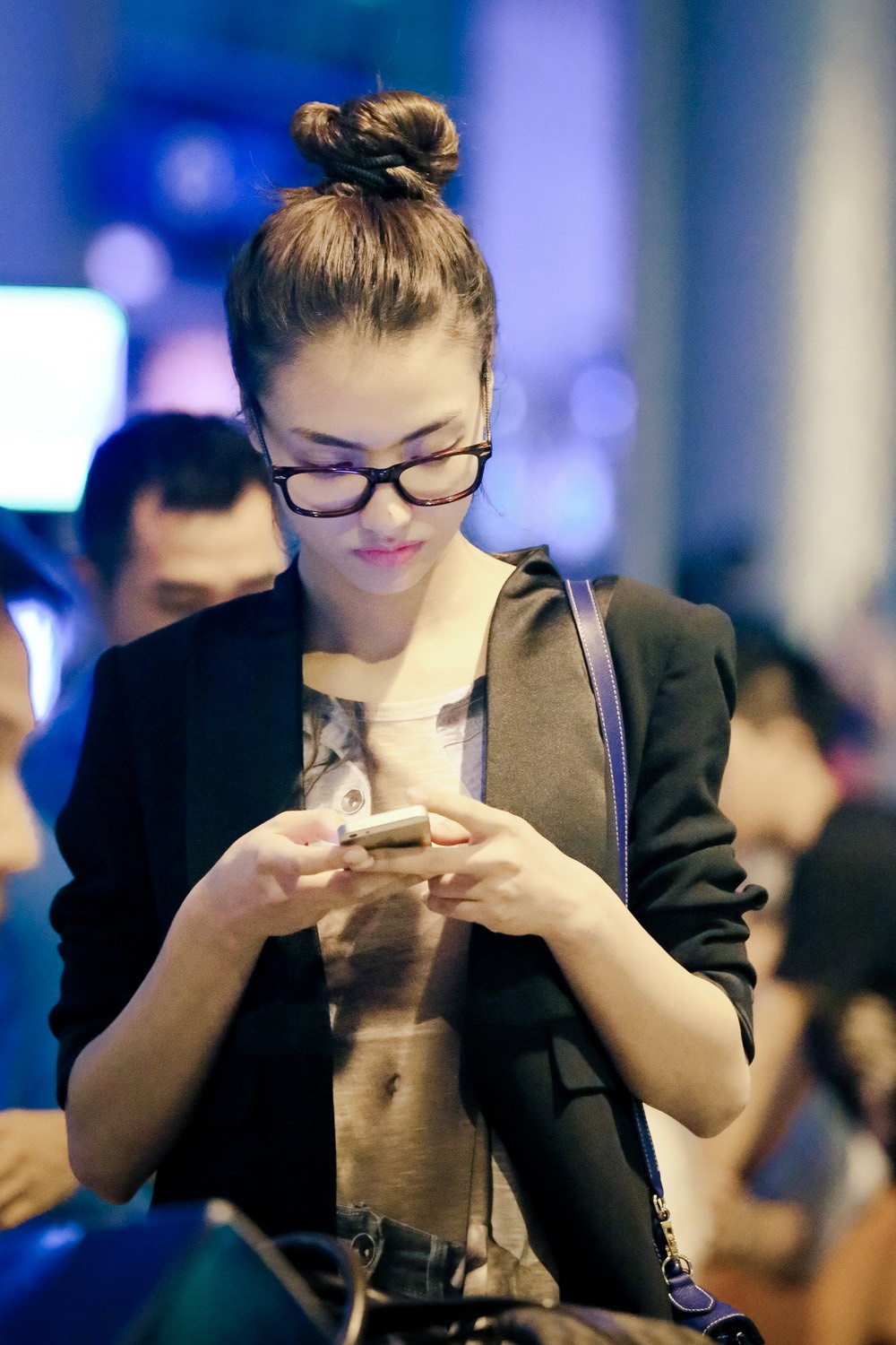 Vừa có mặt ở sân bay Tân Sơn Nhất, Hồng Quế đã tranh thủ nhắn tin cho bạn bè và người thân. Từng được đánh giá là chân dài triển vọng của làng thời trang nhưng Hồng Quế không may vướng vào khá nhiều ồn ào như chuyện ăn vận, phát ngôn... Sau những sự cố đó, chân dài 9X chọn cách sống khá kín tiếng và tập trung cho công việc nhiều hơn.