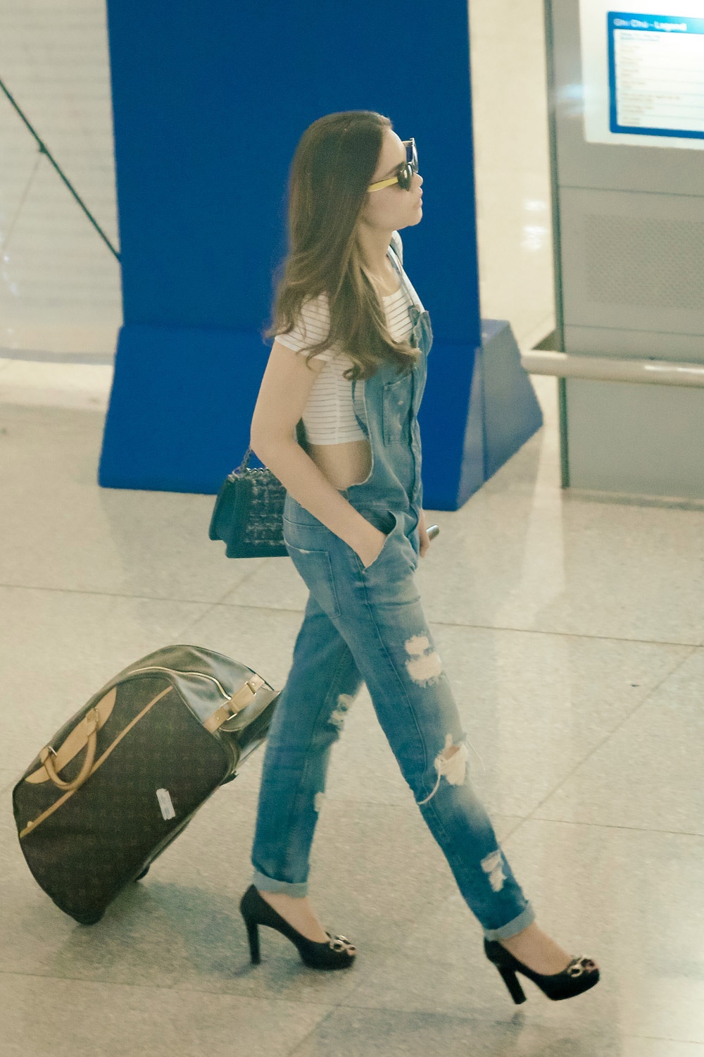 | Vì đi dài ngày nên cô mang khá nhiều hành lý. Sau khi kết thúc trình diễn thời trang, cô còn đi du lịch ở Pháp cùng đàn chị và một số bạn bè. |